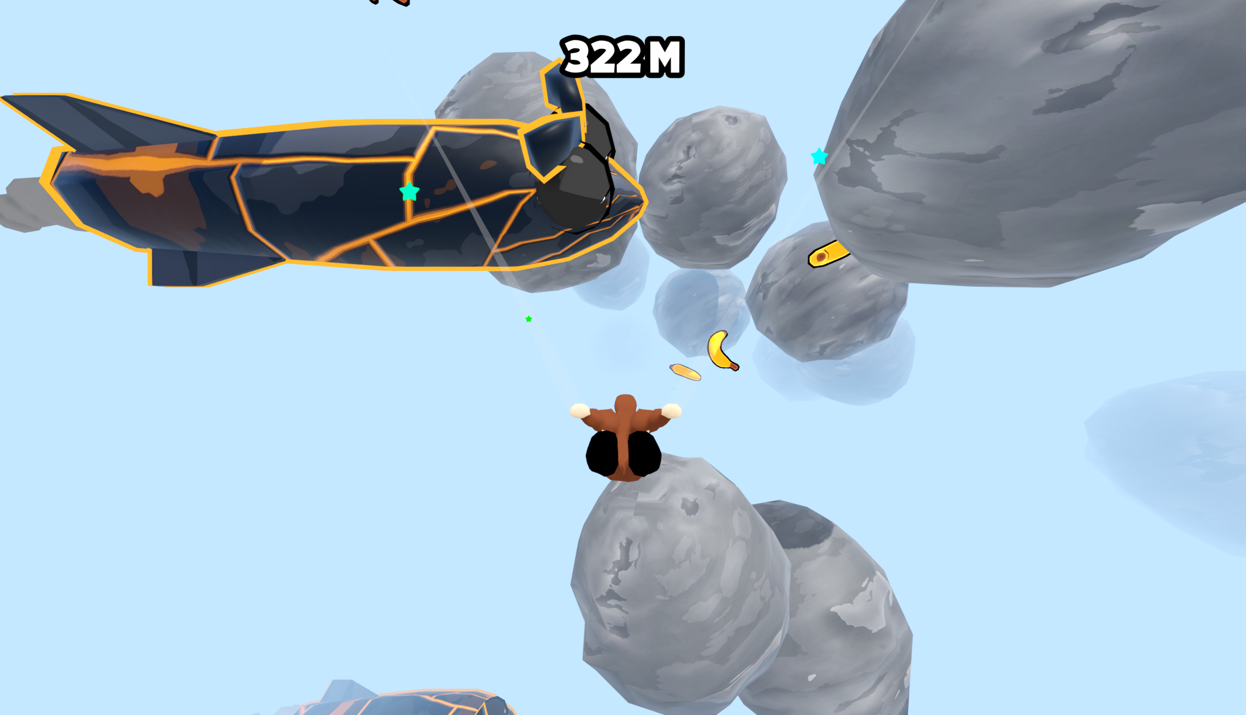 Glide as far as possible. Every 500m you will receive a random Buff/Debuff.